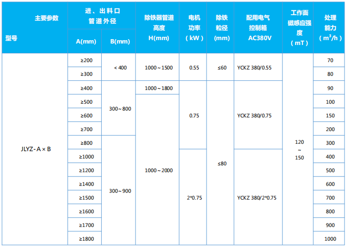 注:可根據用戶需要,定制各種特殊型號、規格的除鐵器