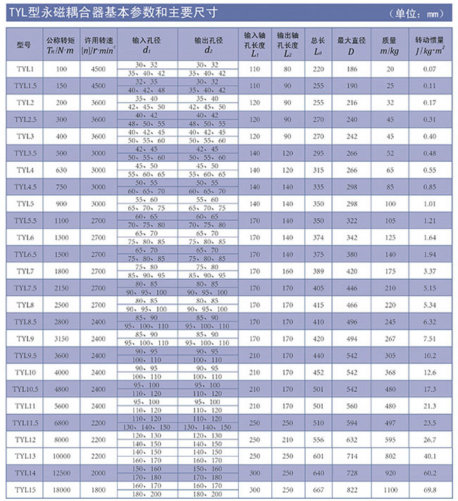 八、TYL型永磁耦合聯(lián)軸器結(jié)構(gòu)圖及主要參數(shù)