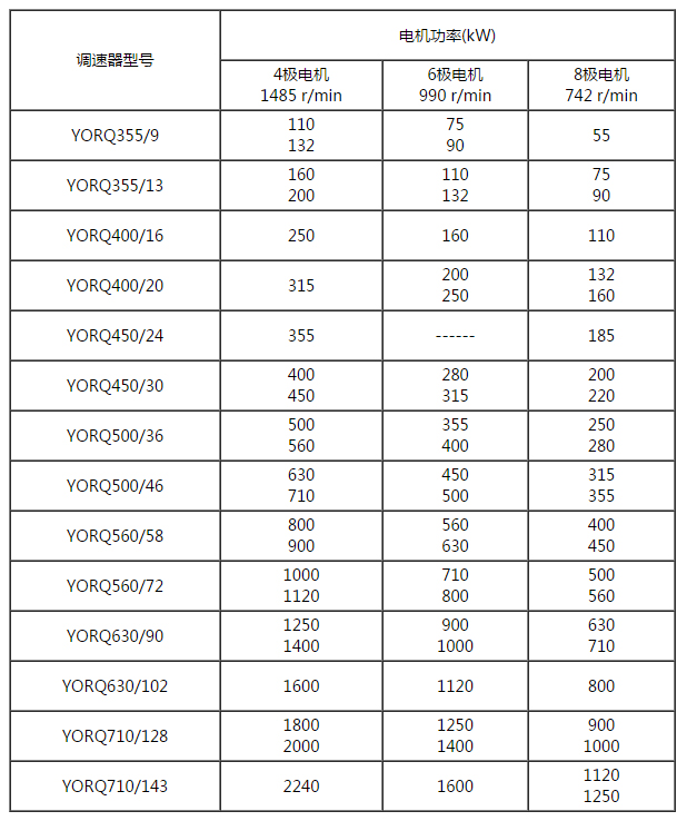 表2  YORQ短系列永磁耦合調速器與匹配電動機功率對照表
